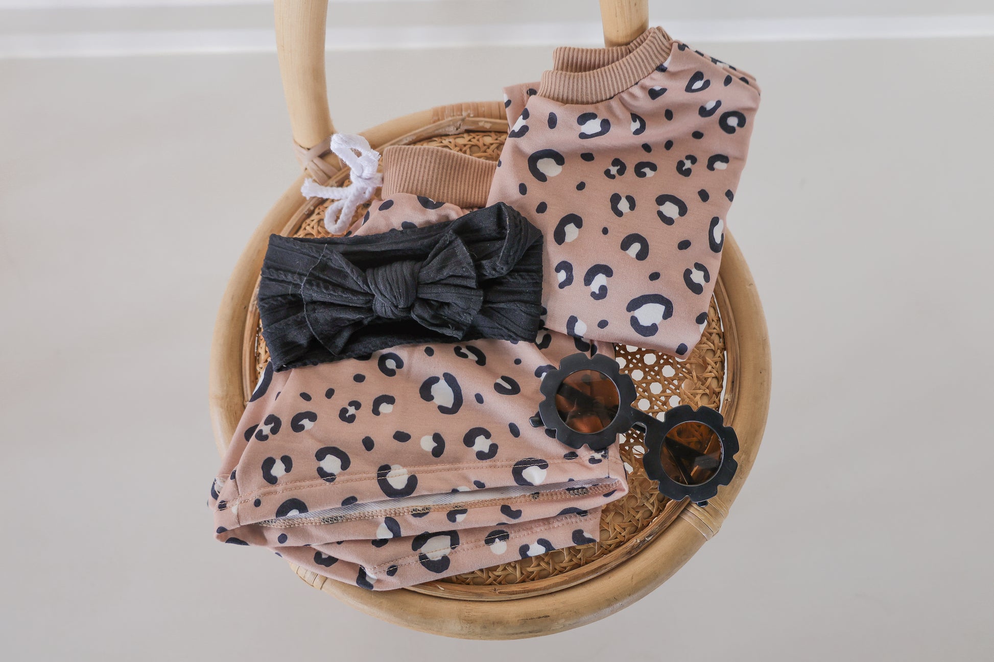 This cozy set brings the fun and wild style to every toddling moment. Featuring a classic fall leopard print and relaxed fit, it is perfect for playing on those autumn days.
